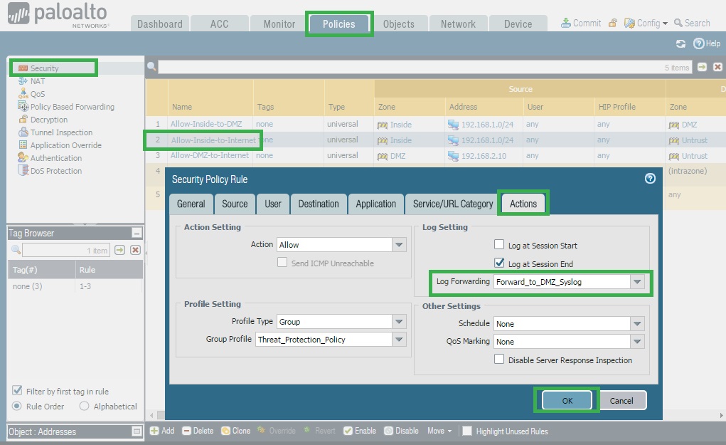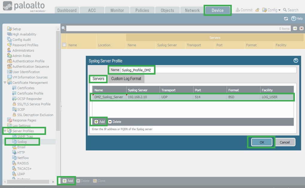 ● Select Syslog Profile: Syslog_Profile_DMZ