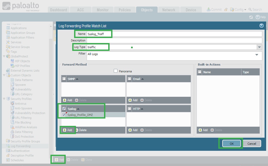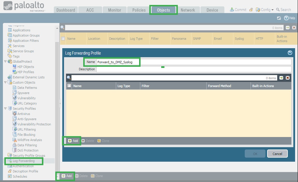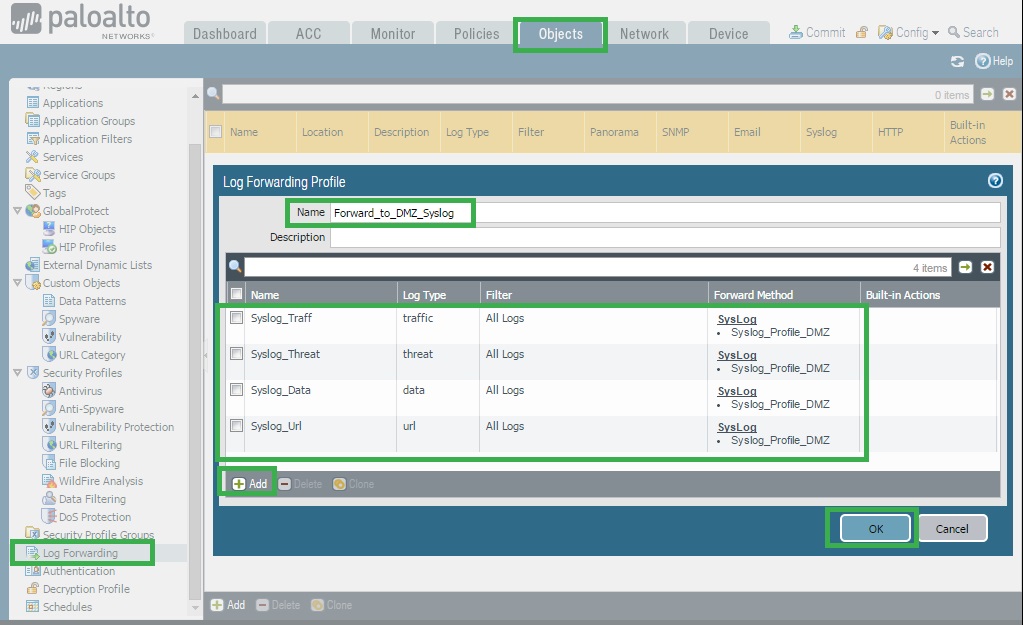 Log Forwarding Profile: Forward_to_DMZ_Syslog